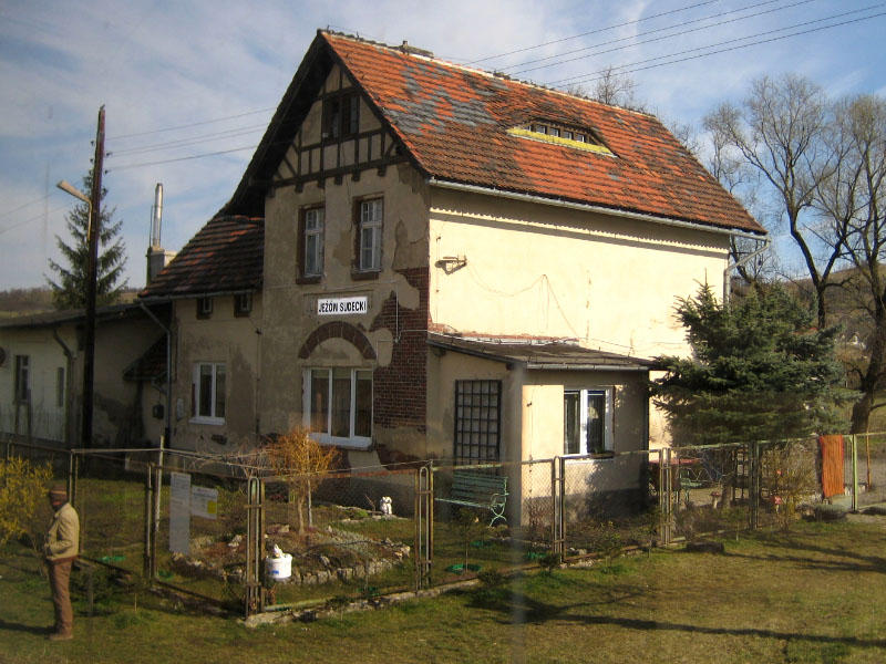 Jeżów Sudecki - budynek dworca od strony podjazdu.