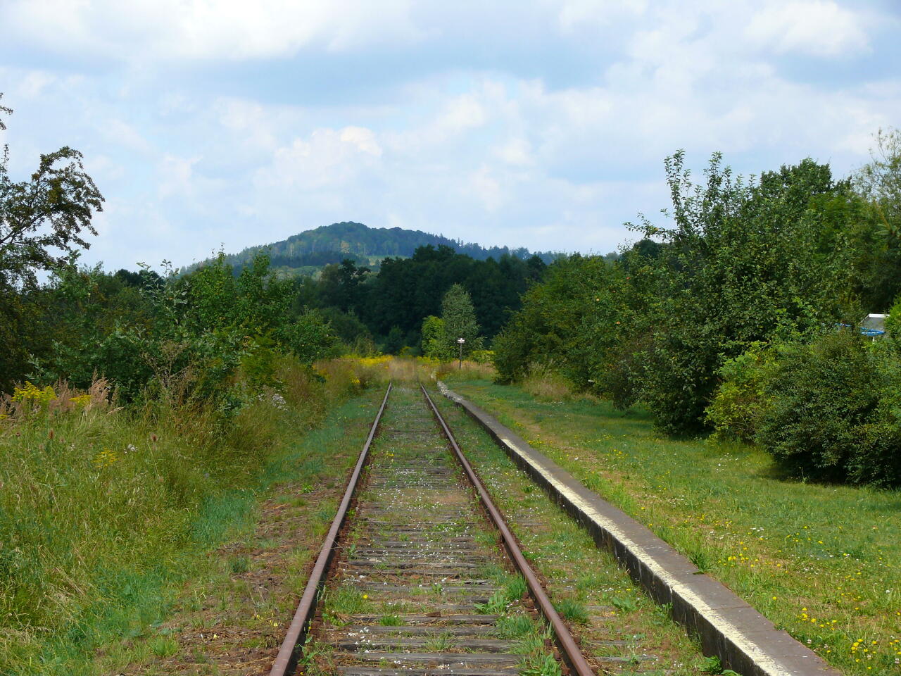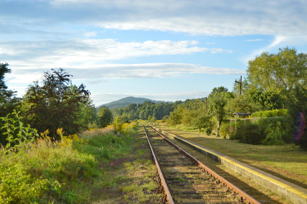 Jeżów Sudecki - widok z końca peronu w kierunku Lwówka Śląskiego.