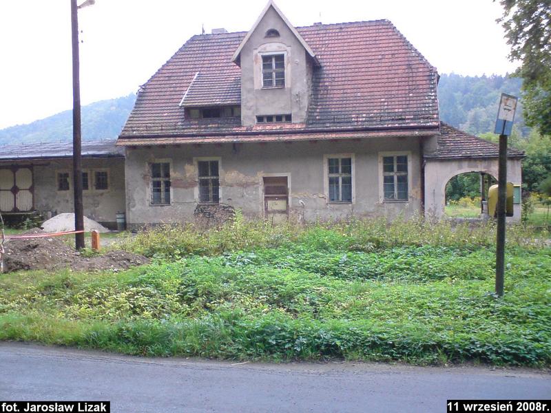 Opis ogólny: 3 tory. Semaforów na pewno nie było już w 1975. Wygląd peronu się trochę zmienił - została posiana trawa, położono płyty chodnikowe i posadzono wiele krzewów. Na wiosnę chcę naprawić elewację od strony jezdni. RYSZARD LEDWON - mieszkaniec budynku stacji Stacja pełniła rolę małego węzła - odchodziła z niej bocznica do pobliskich wapienników. Do dziś wyraźnie widoczne jest ułożenie toru który obniżał się w stosunku do szlaku jeleniogórskiego i przeprawą nad kanałem rzeki Bóbr odbijał w kierunku południowo zachodnim. (info: Andrzej Sibilski, 09-01-2014) Opis infrastruktury: Do dziś w stacji zachowały się dwa tory. Główny zasadniczy pierwszy i boczny ładunkowy trzeci przy którym jeszcze w 2002 roku prowadzono załadunek drewna. Tor trzeci wyposażony jest w dwie wykolejnice. Kluczami do rozjazdów i wykolejnic dysponuje stacja Wleń. Tor główny dodatkowy drugi został rozebrany. (info: Andrzej Sibilski, 09-01-2014) Opis budynków: Na stacji do dziś mimo adaptacji budynków do innych celów funkcjonuje poczekalnia letnia zmodernizowana w 2013 roku. (info: Andrzej Sibilski, 09-01-2014) |