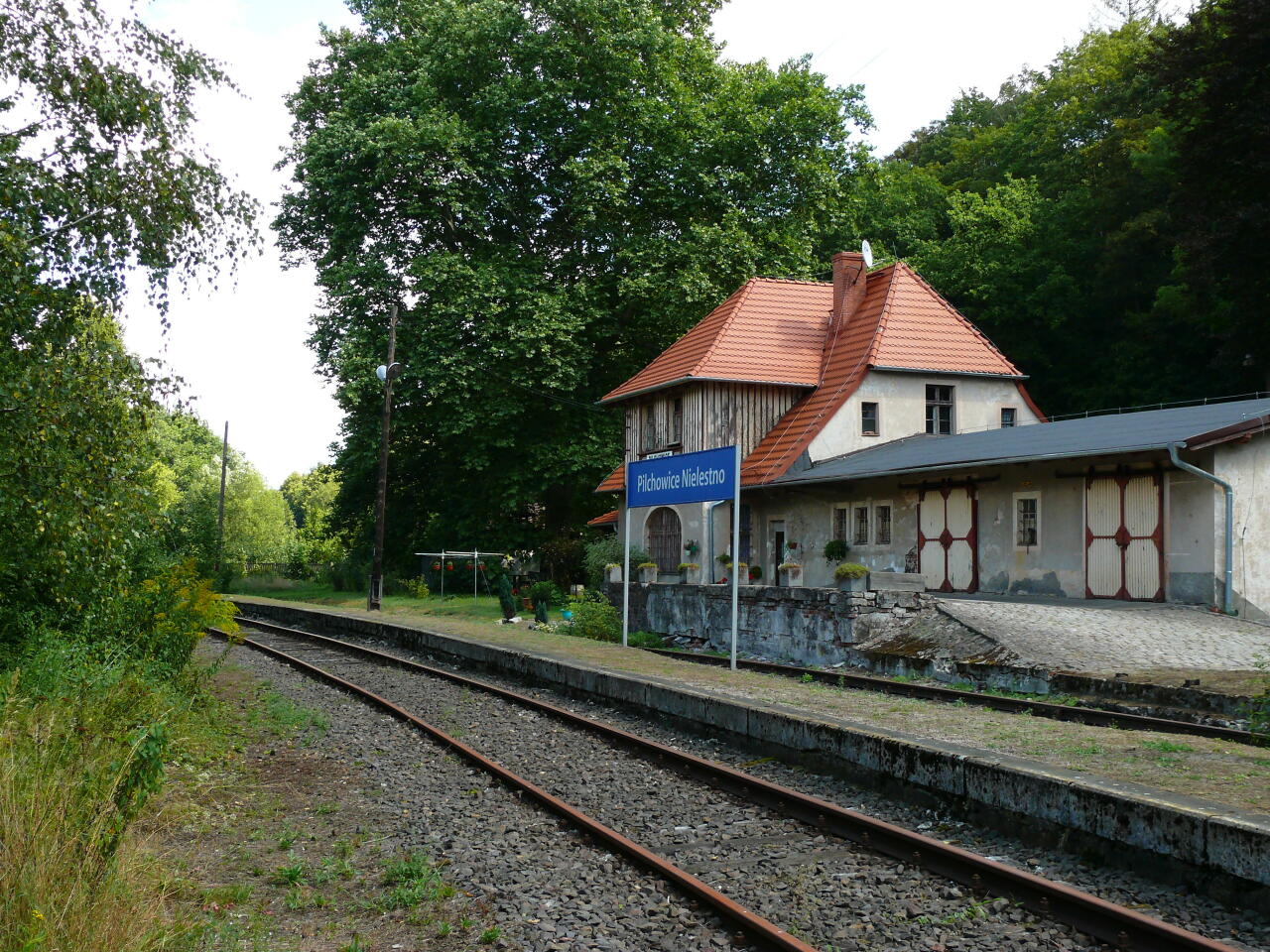 Opis ogólny: 3 tory. Semaforów na pewno nie było już w 1975. Wygląd peronu się trochę zmienił - została posiana trawa, położono płyty chodnikowe i posadzono wiele krzewów. Na wiosnę chcę naprawić elewację od strony jezdni. RYSZARD LEDWON - mieszkaniec budynku stacji Stacja pełniła rolę małego węzła - odchodziła z niej bocznica do pobliskich wapienników. Do dziś wyraźnie widoczne jest ułożenie toru który obniżał się w stosunku do szlaku jeleniogórskiego i przeprawą nad kanałem rzeki Bóbr odbijał w kierunku południowo zachodnim. (info: Andrzej Sibilski, 09-01-2014) Opis infrastruktury: Do dziś w stacji zachowały się dwa tory. Główny zasadniczy pierwszy i boczny ładunkowy trzeci przy którym jeszcze w 2002 roku prowadzono załadunek drewna. Tor trzeci wyposażony jest w dwie wykolejnice. Kluczami do rozjazdów i wykolejnic dysponuje stacja Wleń. Tor główny dodatkowy drugi został rozebrany. (info: Andrzej Sibilski, 09-01-2014) Opis budynków: Na stacji do dziś mimo adaptacji budynków do innych celów funkcjonuje poczekalnia letnia zmodernizowana w 2013 roku. (info: Andrzej Sibilski, 09-01-2014) |