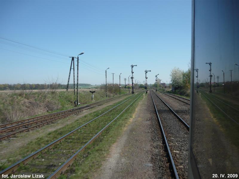 Z lewej tor z Jawora z semaforem wjazdowym. Z prawej tor z kamieniołomu granitu. Widok w kierunku południowo-wschodnim.