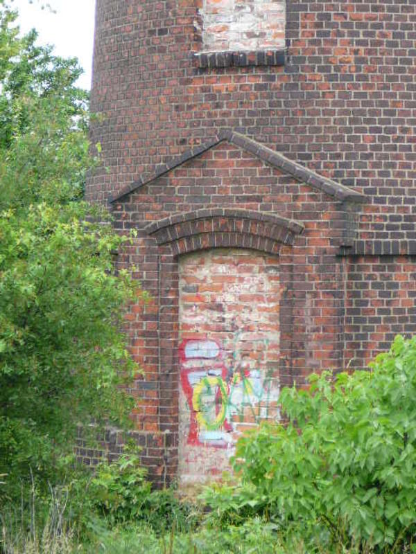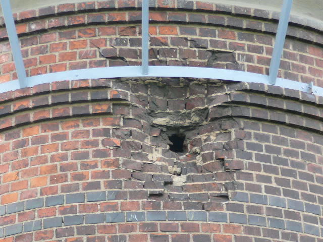 Bojanowo. Ślad wojenny na wieży wodnej.