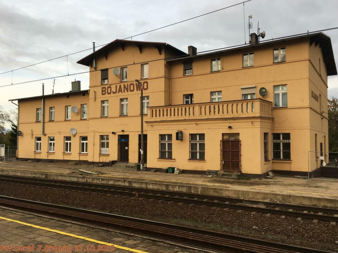 Bojanowo, budynek dworca od strony peronów i wjazdów z Leszna i Góry Śląskiej. Kierunek południowo-wschodnim.