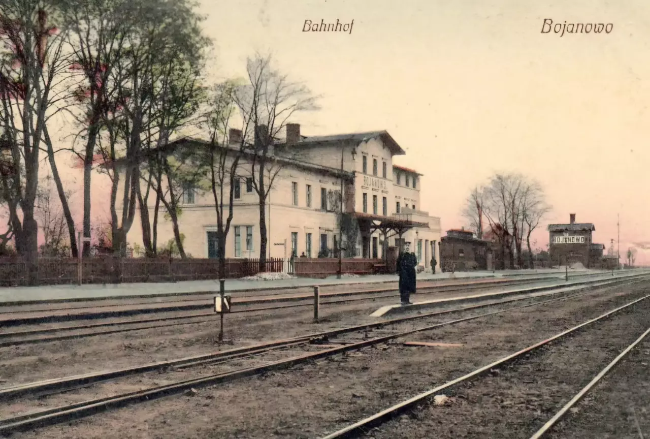 Bojanowo. Kierunek Leszno, po prawej zabudowania dworcowe.