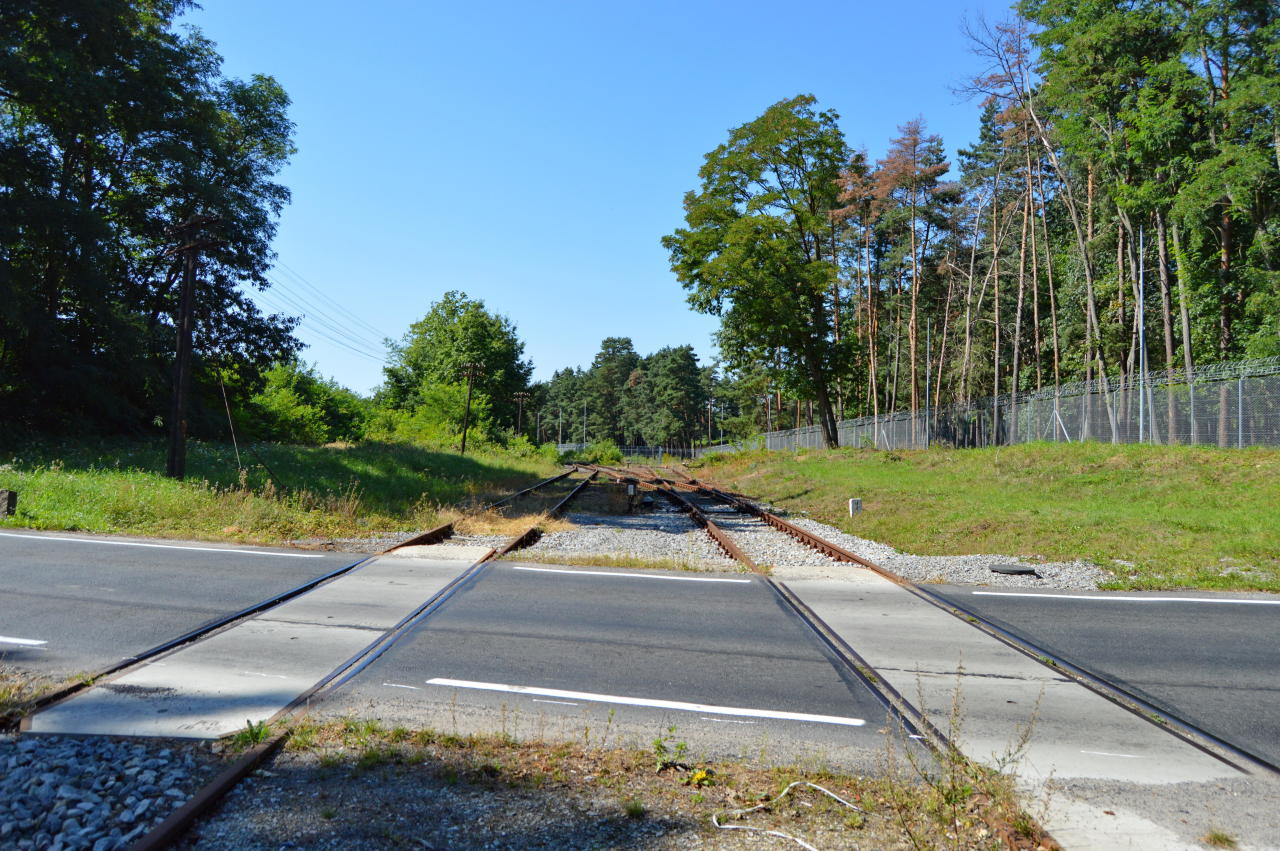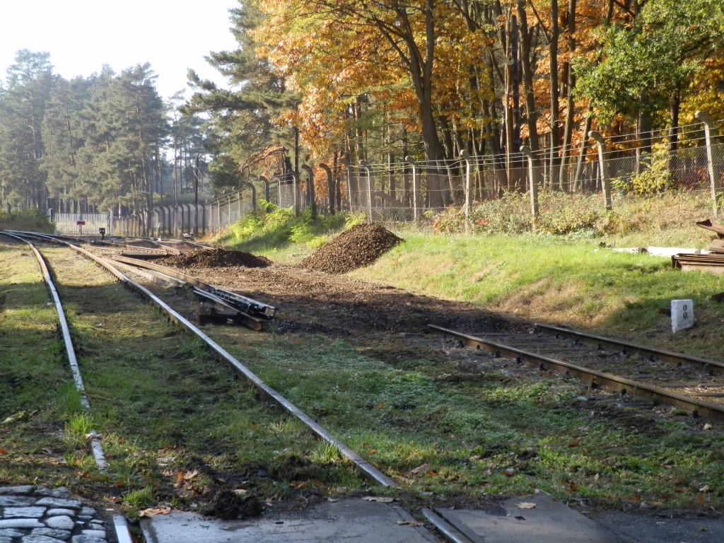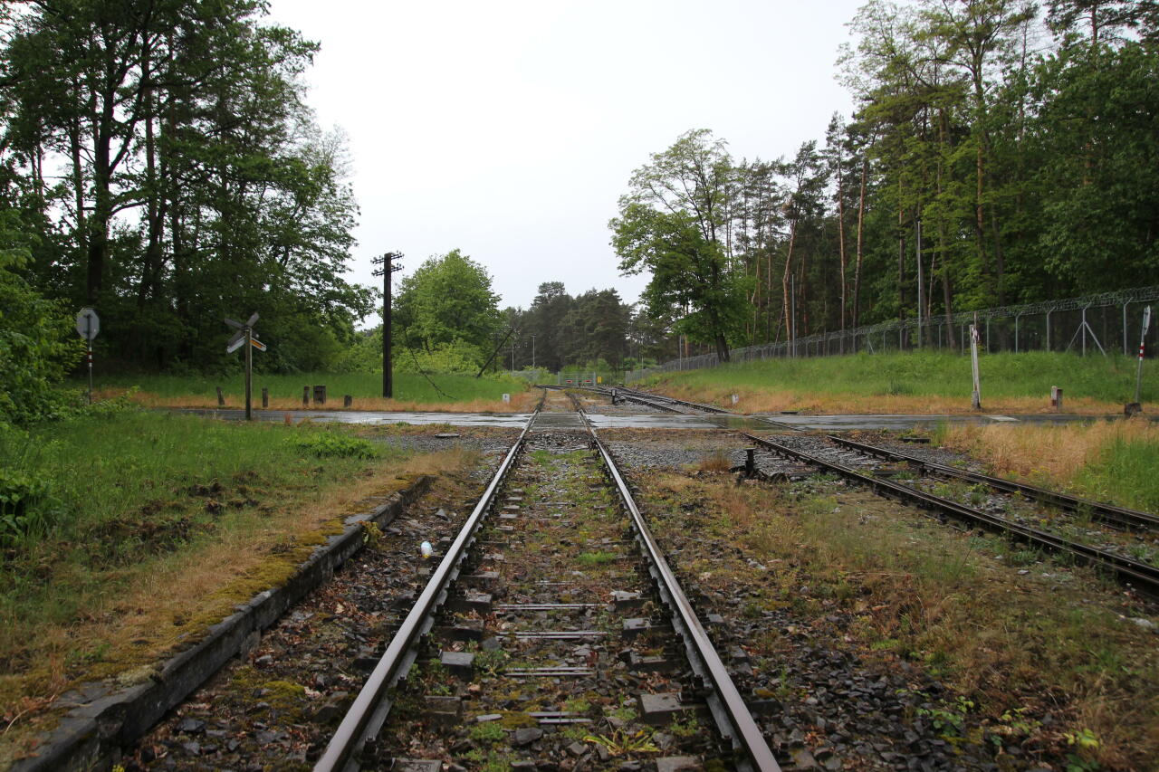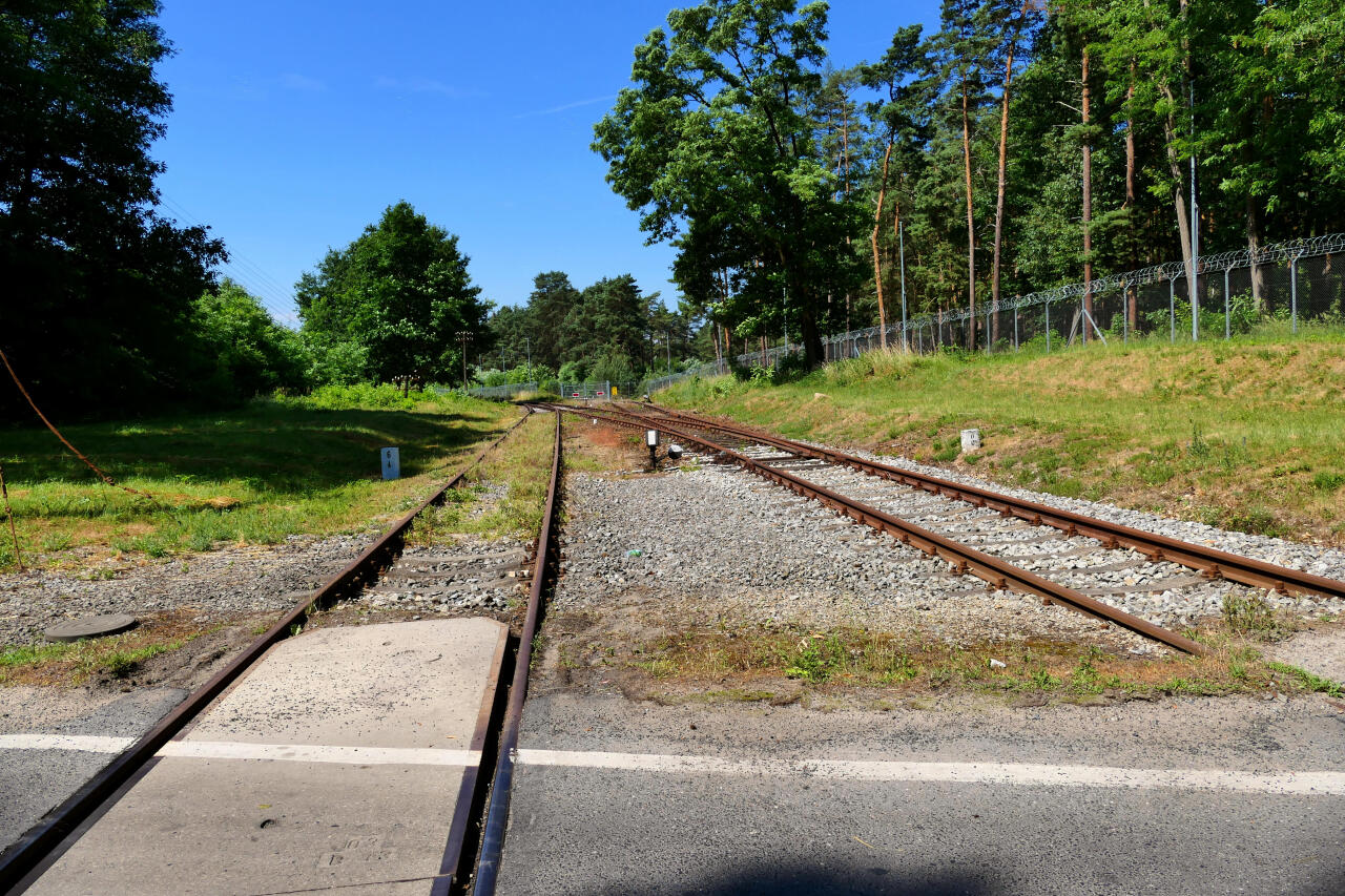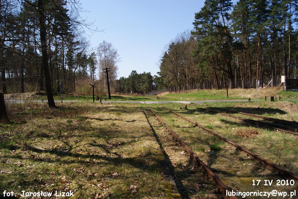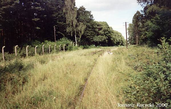 A teraz poglądamy w lewo i widzimy tory prowadzące do jednostki, a za nimi płot.