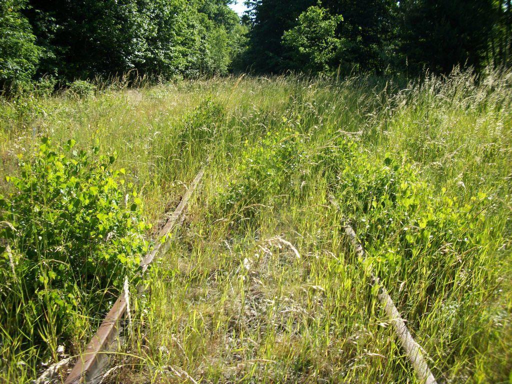 Na terenie dawnej st.Duninów, widok na Chocianów. Dalej na linii rośnie już młody lasek a tor kawałek dalej jest rozkradziony na ok. 300m.