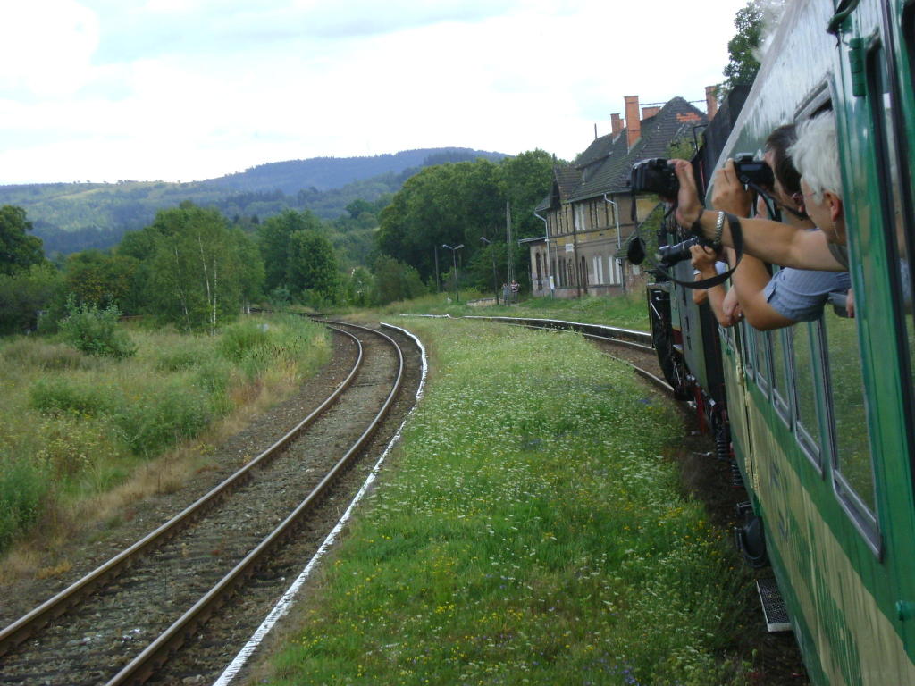Opis ogólny: [2005-02-04] Jest budynek, prawdopodobnie stacyjny. Peron z budynkiem posiada wiatę, drugi jest bez wiaty. (info: Andrzej Wysocki, 2005-05-22) Senna stacyjka ożywała w weekendy w sezonie turystycznym, gdyż była doskonałym punktem wypadowym dla pragnących odwiedzić kompleks podziemnej fabryki w Walimiu. W soboty i niedziele przyjeżdżały tu liczne wycieczki (zwłaszcza młodzieży), nieraz było to po kilkadziesiąt osób. Dawniej opodal stacji znajdował się punkt przerobu kruszywa dostarczanego koleją linową z kamieniołomu melafiru znajdującego się na zboczu góry Ostoji. Dziś po tych budynkach pozostały ruiny natomiast próżno szukać śladów bocznicy kolejowej, która tam dochodziła. (info: wasiukibic, 2007-04-01) Opis infrastruktury: Drewnianą wiatę wycięto po zawieszeniu przewozów pasażerskich na linii Wałbrzych - Kłodzko. Istniała także (tuż przy magazynie przesyłek) ruchoma rampa, która przesuwała się pod same drzwi wagonu - dziś pozostał po niej tylko fundament. (info: wasiukibic, 2007-04-01) Stacja Głuszyca Górna został zamknięta dla czynności techniczno-ruchowych pod koniec lat 70-tych poprzedniego wieku. Tory boczne zachowano gdyż wówczas nadal działał punkt załadunku kruszywa, dlatego od końca lat 70-tych do początku 90-tych Głuszyca Górna oprócz przystanku pełniła też rolę ładowni. (info: Grzesiek Węglarz, 31-05-2008) Opis budynków: Budynek dworca dwukondygnacyjny z poddaszem użytkowym, magazyn parterowy. Ściany trochę popisane ale ogólnie na tle PKP-owskiej biedy całość prezentuje się jeszcze nie najgorzej. (info: wasiukibic, 2007-04-01) Część budynku dworca zaadaptowana na cele mieszkalne, jeden tor zamknięty ze względu na remont wiaduktu w kierunku Bartnicy. (info: Jakub M. 18-08-2016) |