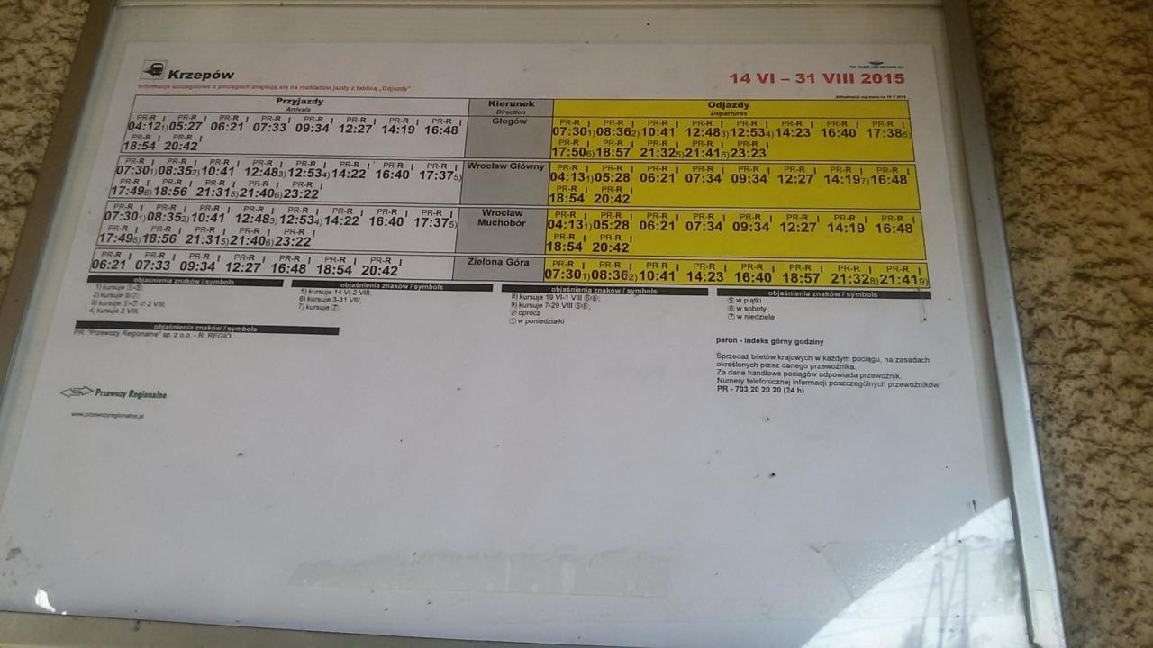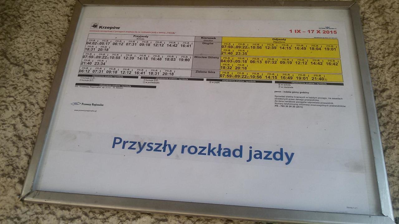 Rozkład jazdy ze stacji Krzepów 2011/2012.