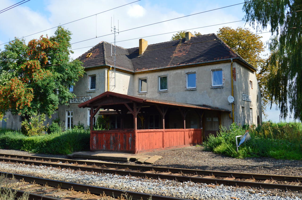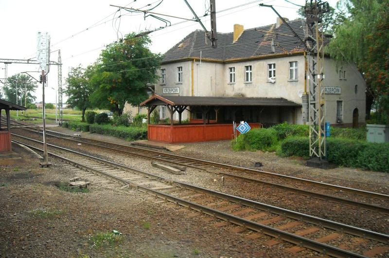 Stacja Krzepów - od strony Grębocic. Widok z pociągu nr 8646 relacji Kamień Pomorski – Wrocław Główny.