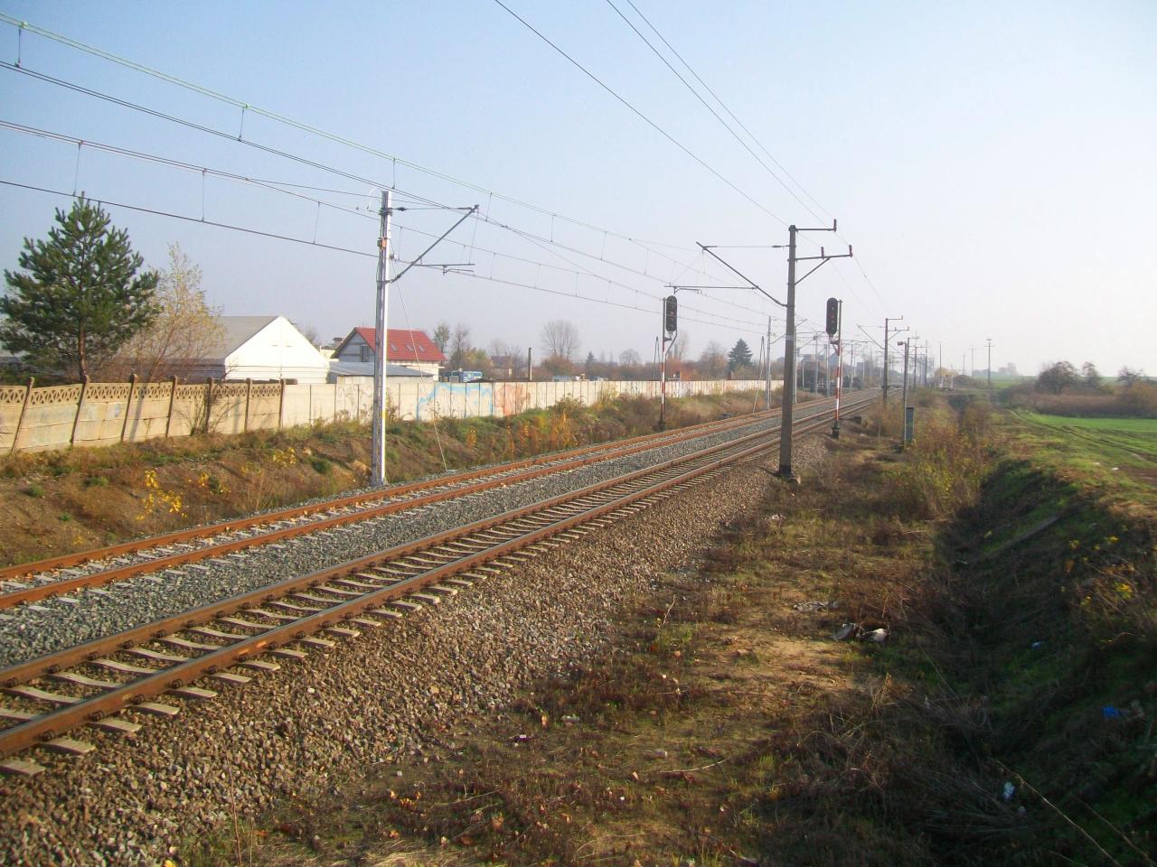 Semafory wjazdowe od strony stacji Głogów. Widok w kierunku południowo-wschodnim (perony).