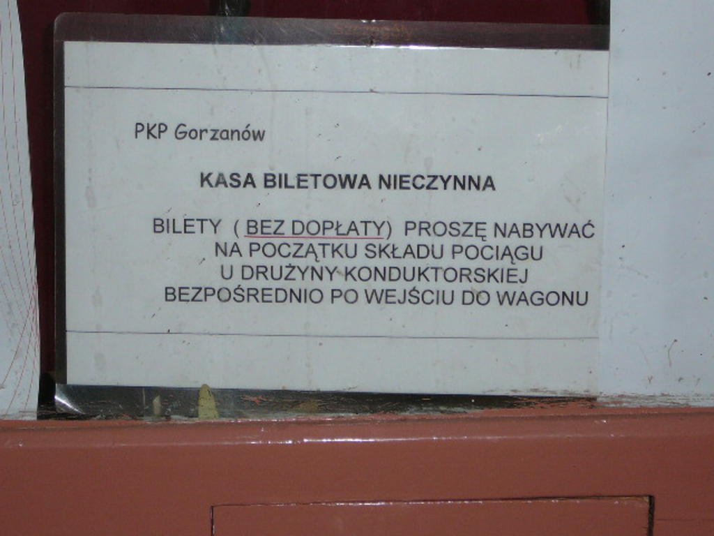 Gorzanów. Informacja w okienku kasy.