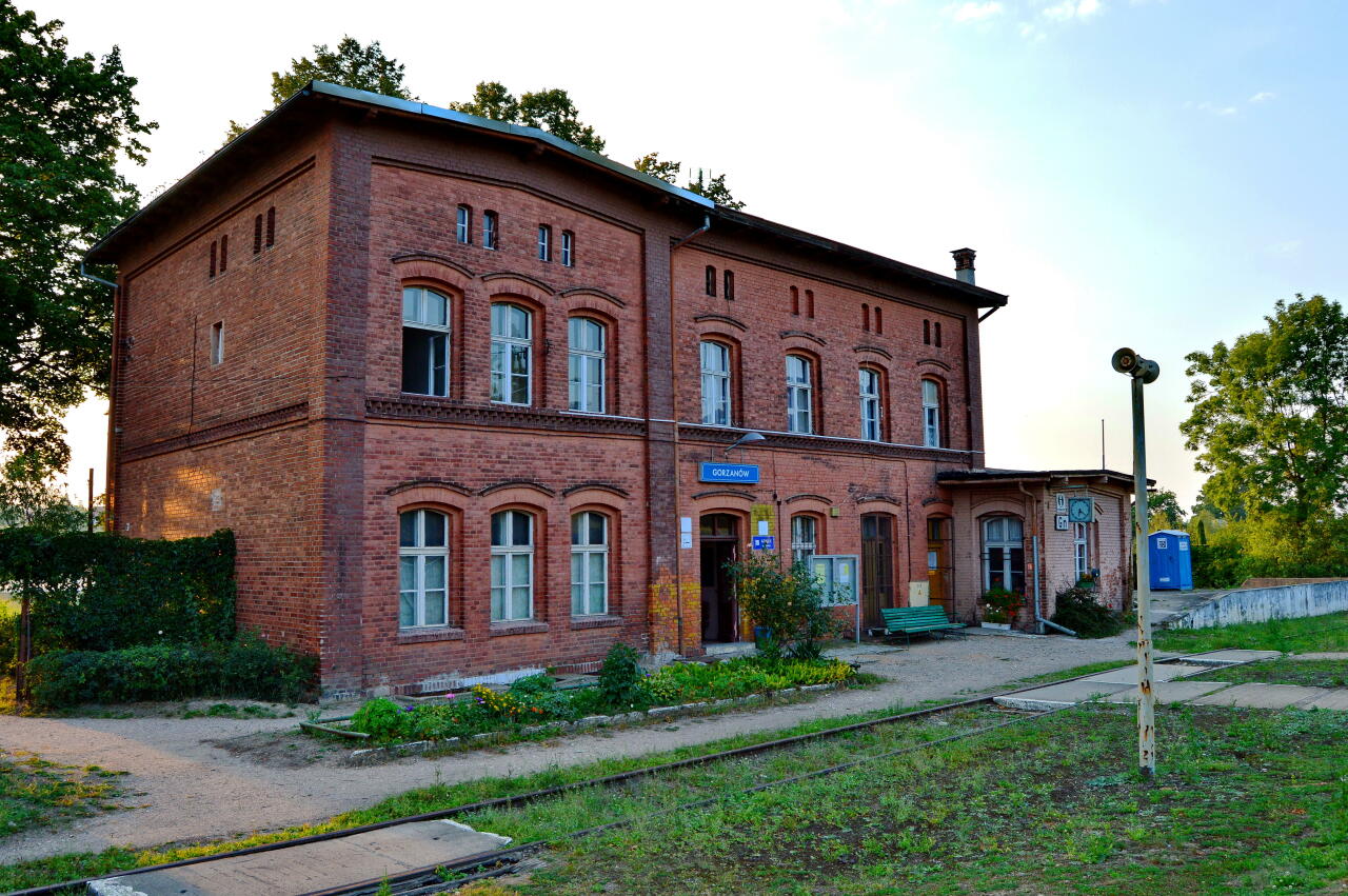 Budynek dworca w Gorzanowie. Widok od ulicy.