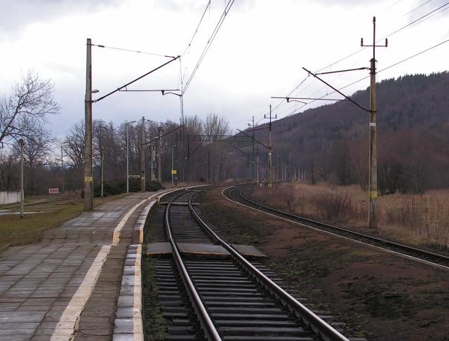 Gorzanów. Widok z peronów w kierunku Bystrzycy Kłodzkiej/Międzylesia (południe).