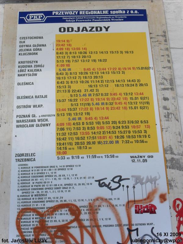 Stacja Wrocław Nadodrze, rozkład jazdy z 2009 roku.