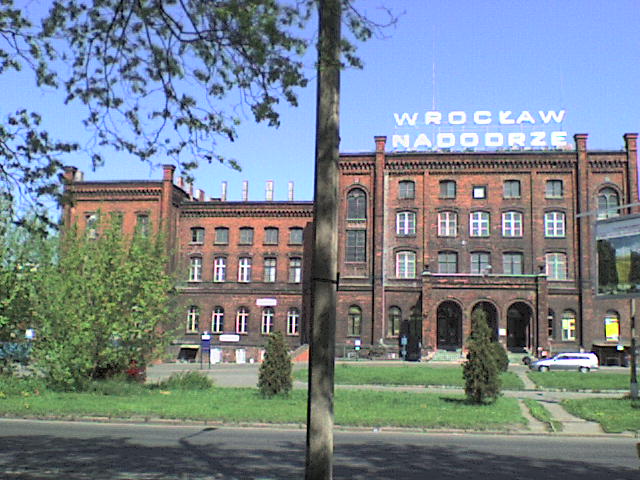 Wyjazd z terenów placów ładunkowych i bocznic zakładowych położonych w północno-wschodniej części stacji, przy ulicach Rychtalskiej i Browarnej. W tamtych latach część torów była jeszcze używana, choć większość wyłączono już z użytkowania. Wszystkie tory zbiegały się w jeden, który kończył się kozłem oporowym po przeskoczeniu mostem nad Kanałem Miejskim. Dalej można dostrzec zelektryfikowane tory przeskakujące mostem Odrę i biegnące do stacji Wrocław Sołtysowice i dalej do Jelcza, Trzebnicy, Oleśnicy, etc. Z prawej strony na nasypie stoją semafory wjazdowe na stację Wrocław Nadodrze oraz tarcza ostrzegawcza przed semaforem wjazdowym stacji Wrocław Sołtysowice. W tle zabudowania Browaru Piastowskiego, w tym czasie już przetrzebione wyburzeniami, jakie odbyły się na początku 2008 roku. Zakład zamknięto w 2003 roku, po wrogim przejęciu przez firmę Carlsberg, która zniszczyła ponad 100 letnią tradycję ważenia wrocławskiego piwa. Do tego czasu na teren zakładu wjeżdżały pociągi towarowe po kilkanaście wagonów. Obecnie Browar jest własnością firmy Archicom, która planuje rewitalizację tego terenu i wznowienie produkcji piwa na mniejszą skalę. Widok w kierunku wschodnim (Wrocław Sołtysowice).