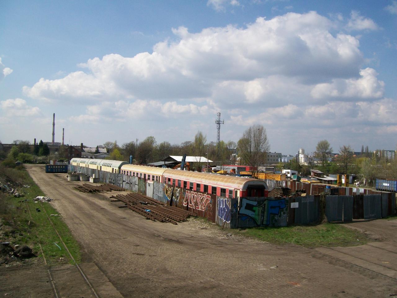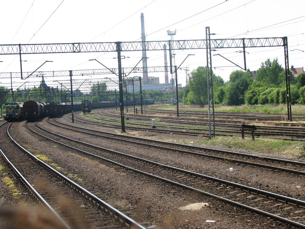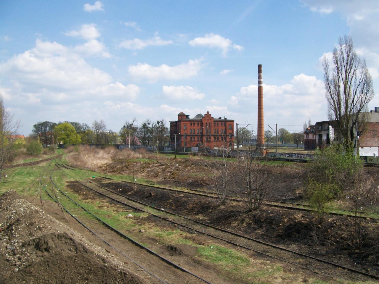 Teren placów ładunkowych w północno-wschodniej części stacji pomiędzy ulicami Rychtalską (na wprost), Browarną (w prawo) i torami kolejowymi (w lewo). W momencie cyknięcia fotki jeszcze coś się tu działo - w centrum kadru przygotowane do pocięcia dwa wagony klasy 1 oraz zółto-niebieska Bipa. Kilkanaście lat wcześniej pamiętam to miejsce jako pełne wszelakich wagonów towarowych (kryte, węglarki, platformy), które przywoziły różnorakie towary do tej przemysłowej (wtedy) części miasta. Z kumplami przychodziliśmy tu regularnie, połazić po tych wagonach, lub wbić się do przetaczanych po bocznicach składów. Często też przychodziłem tu do mamy, która pracowała w miejscowej ekspedycji towarowej, wtedy na legalu można było się zabrać do kabiny SM42 i pojeździć sobie z maszynistami po bocznicach. Nieraz kilka razy dziennie trzeba było wyjść do przyjęcia/wyekspediowania wagonów towarowych, a do obsługi stacji towarowej przydzielone były na stałe 3 lub 4 lokomotywy manewrowe i na brak pracy nie narzekały. Kręciło się tu także mnóstwo ludzi, zarówno pracowników kolejowych jak i firm zewnętrznych. Ruch był tutaj jak w ulu. Teraz, po likwidacji wszystkich zakładów po tej stronie torów ruch towarowy spadł drastycznie, od czasu do czasu jeszcze złom się tu nadaje ale przekształcenia tej części Wrocławia dokonują się bardzo szybko, także los tego miejsca jest raczej przesądzony. W tle widoczne dwa kominy EC Wrocław, niższy z nich został w bieżącym roku wyburzony. Widok w kierunku zachodnim (perony).
