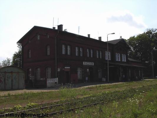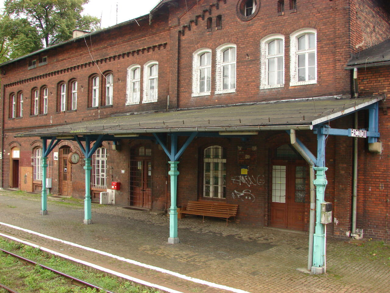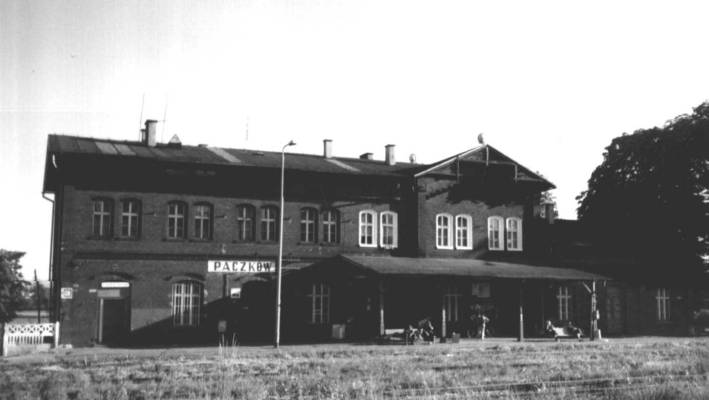 Paczków, budynek dworca od strony miasta widziany w kierunku północno-zachodnim.