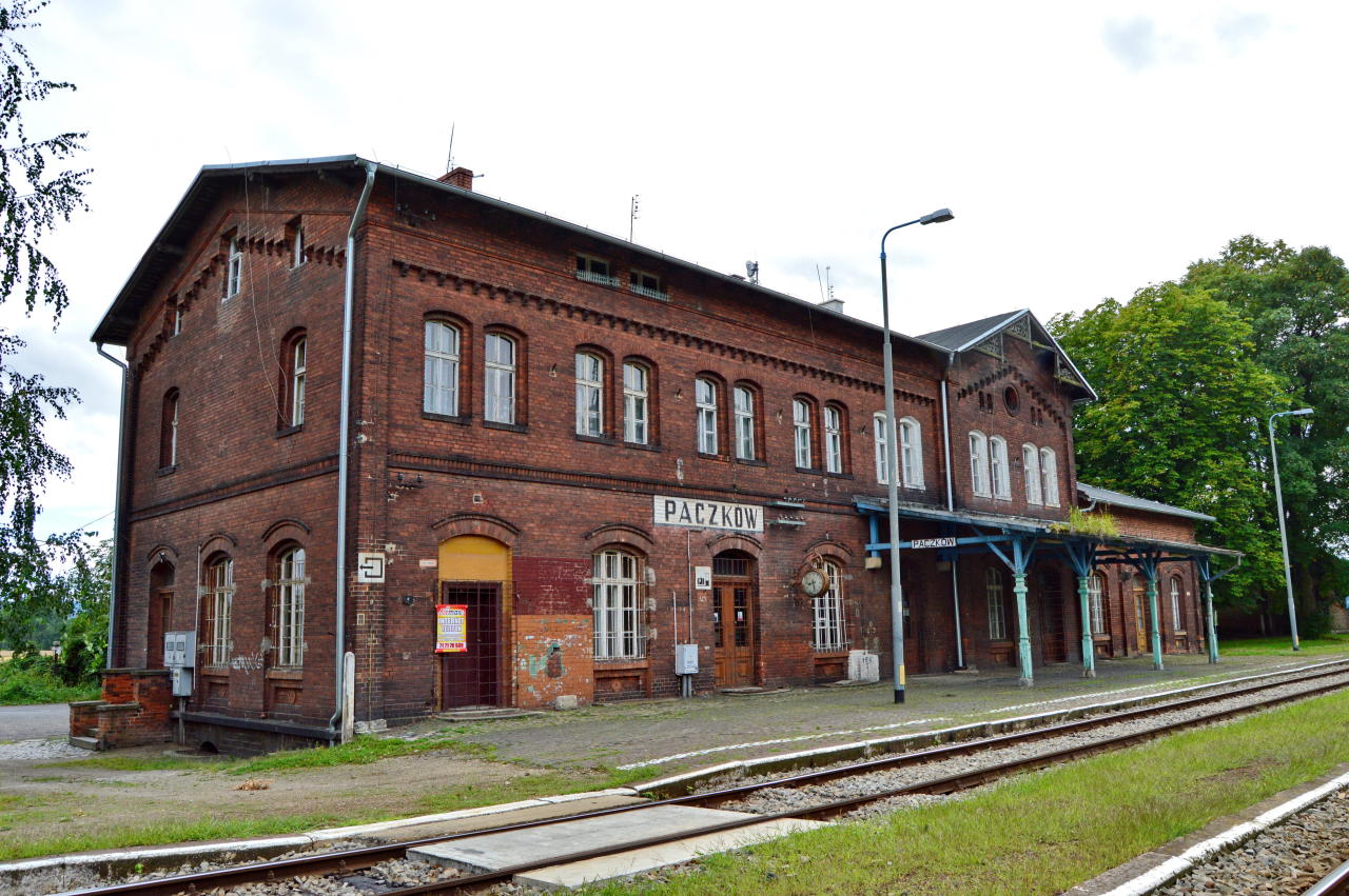 Widok na stację Paczków w kierunku wschodnim (Otmuchów, Nysa) sprzed budynku dworcowego.