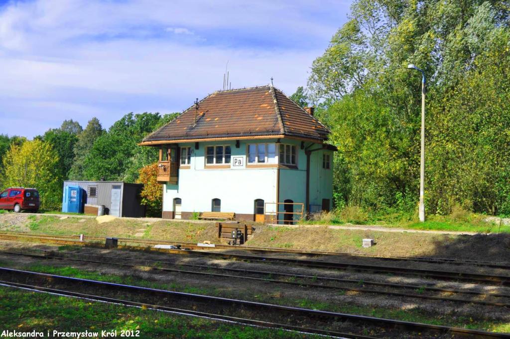 Widok z peronu w kierunku zachodnim (wylot w kierunku Kamieńca). Po prawej nastawnia PA.