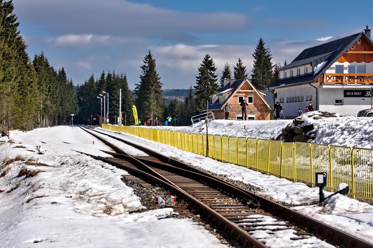 Stacja Jakuszyce. Coś drgnęło na stacji w Jakuszycach. Widok w kierunku Harrachova.