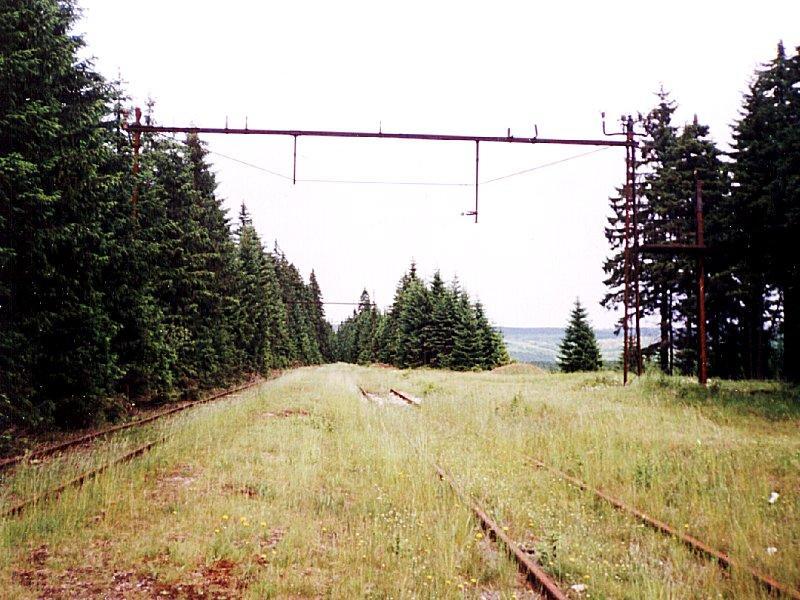 Widok na peron i równię dawnej stacji w kierunku południowo-zachodnim (Harrachov).