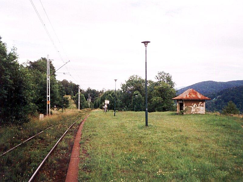 2014: Na peronie stoi budka. 2007-12: Pomyśleć, że pociąg by tu dotrzeć musi pokonać serię zakrętów… Szybciej z Piechowic można tu dość piechotą. Dlatego ten przystanek jest mało popularny, tym bardziej że ulokowano go na stromym zboczu. (info: Marcin Czech). |