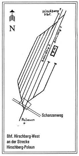 W prawym, dolnym polu widok na stację z budynkiem dworca; w lewo stacja Jelenia Góra, w prawo Szklarska Poręba. Ze zbiorów Adama Pacześniaka.