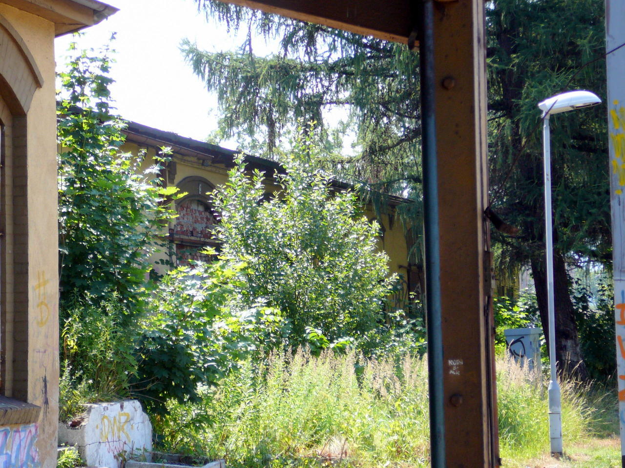Jelenia Góra Zachodnia. Magazyn w zieleni, w prawo Szklarska Poręba.