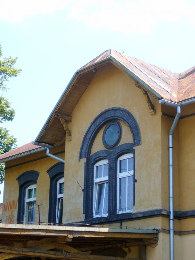 Jelenia Góra Zachodnia. Fragment budynku dworca od strony torów. Był tam kiedyś zegar?.