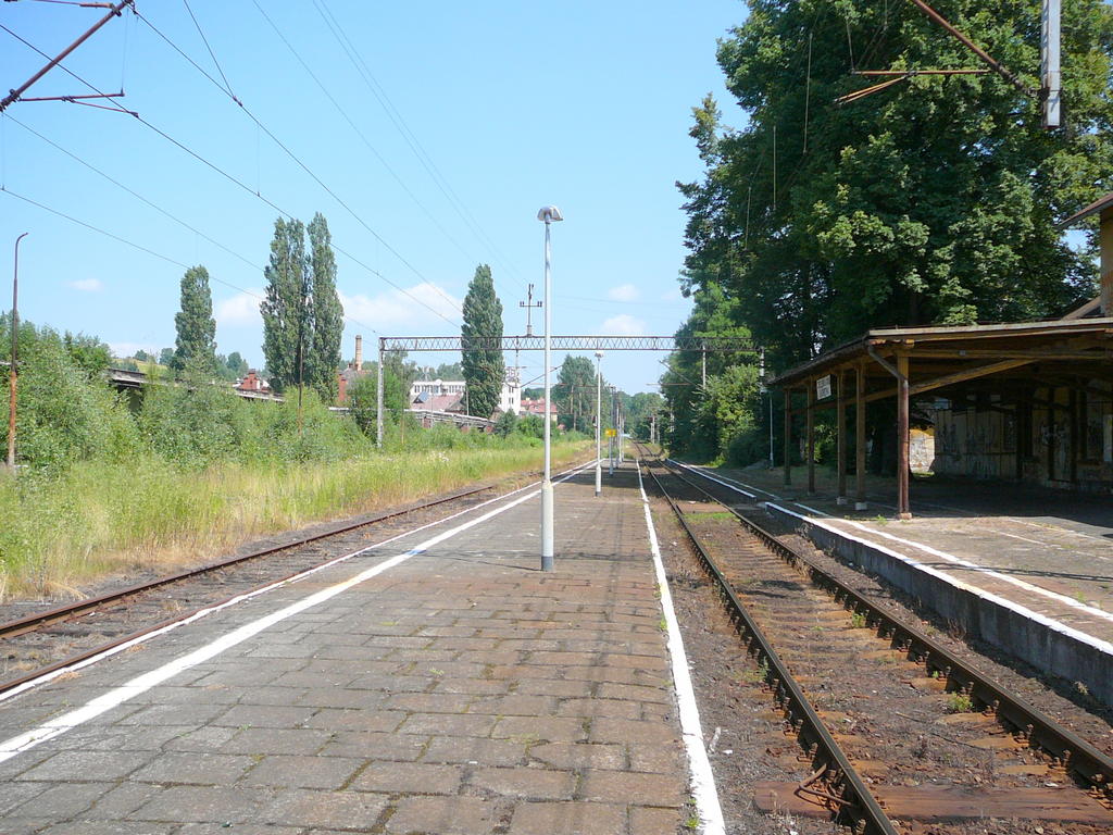 Jelenia Góra Zachodnia. Perony i tory w kierunku stacji Jelenia Góra.