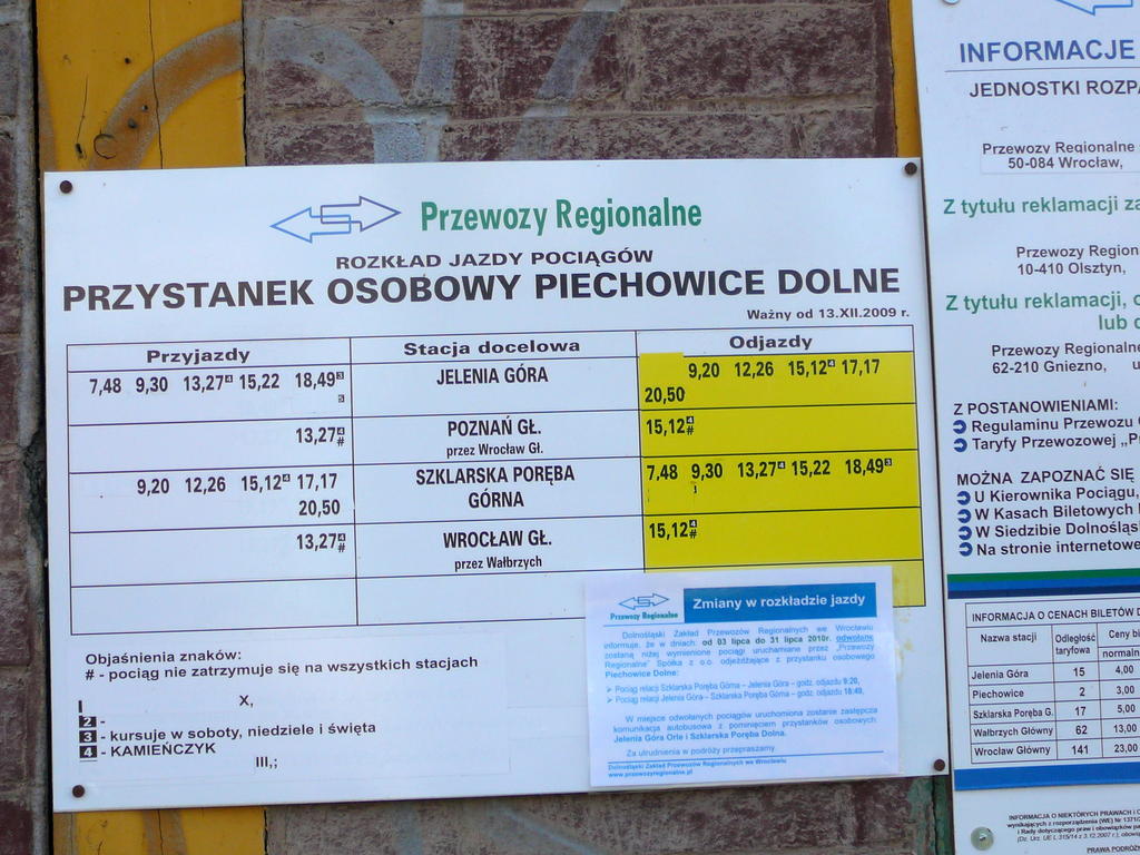 Piechowice Dolne. Aktualny rozkład jazdy.