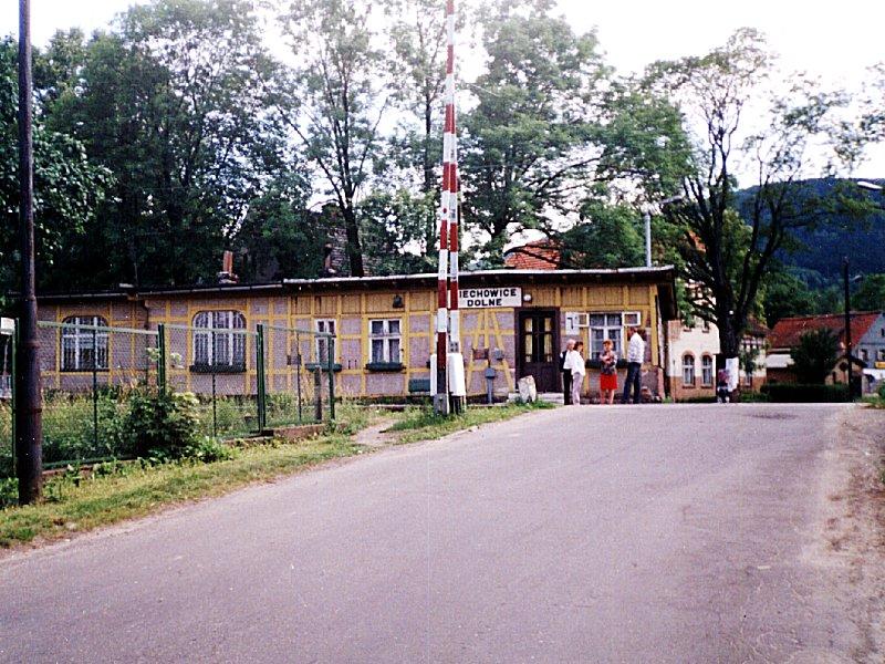 Piechowice Dolne. Przejazd w ul. K. Świerczewskiego przy budynku dworca.