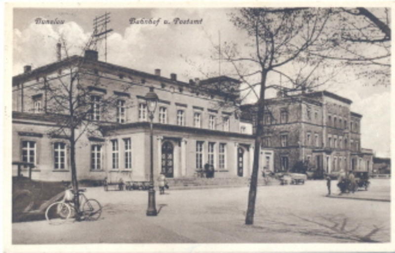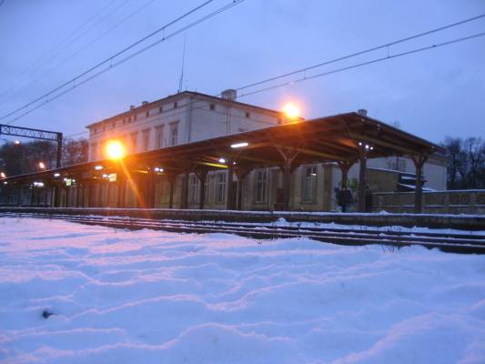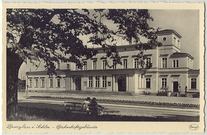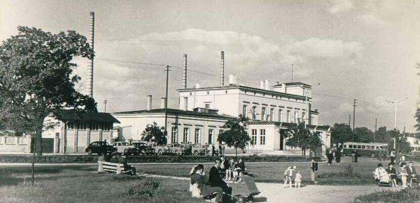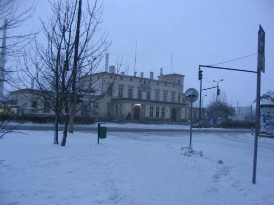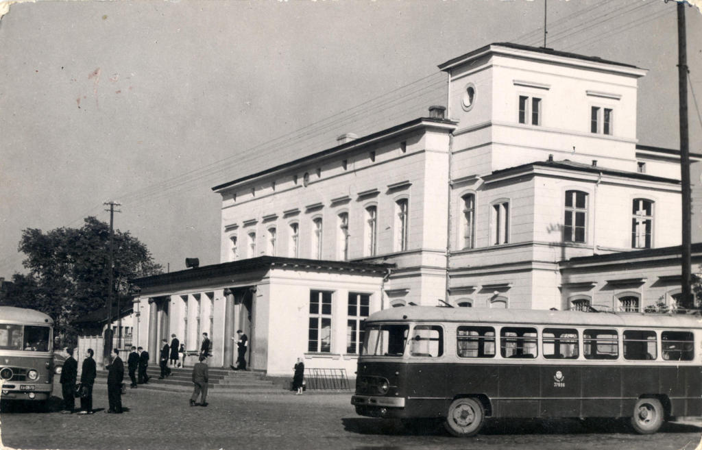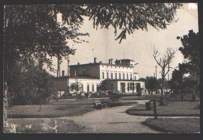 Widok na budynek dworca od strony miasta, w kierunku północno-zachodnim. Ze zbiorów Adama Pacześniaka.