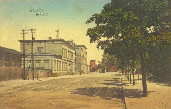 Dworzec w Bolesławcu. Widok od strony miasta w kierunku wschodnim (Chojnów).