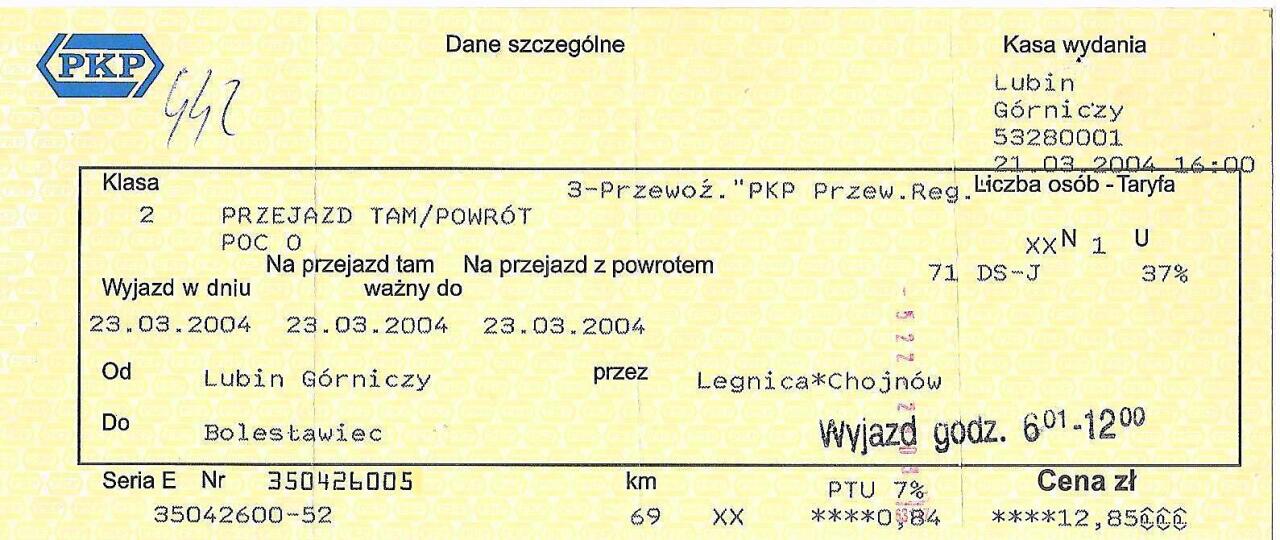 Bilet z Lubina do Bolesławca - 2004 rok.