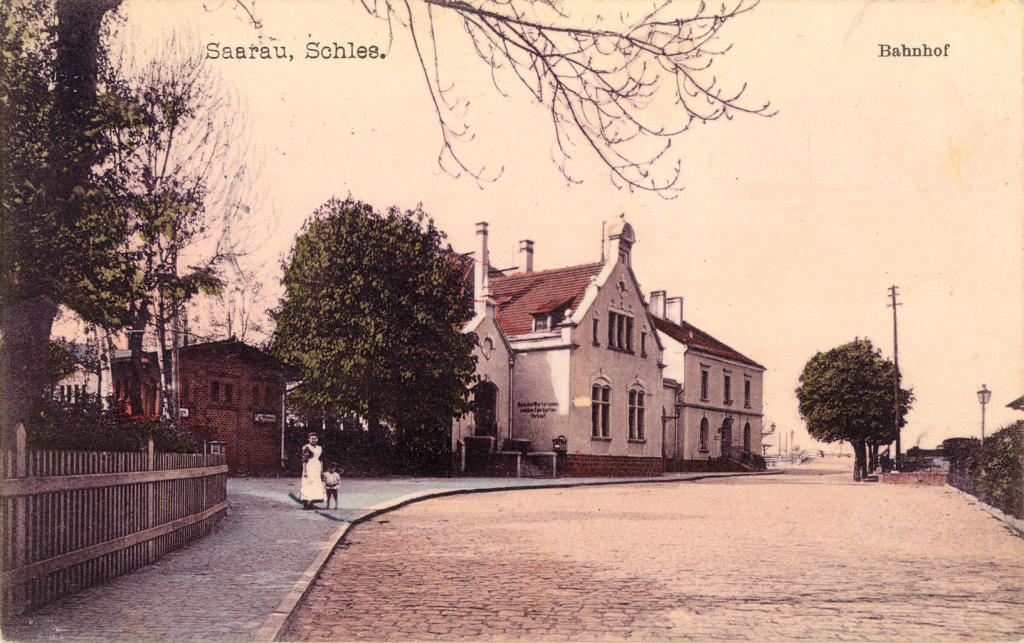 Widok na budynek dworca od strony peronu i wjazdu z Wrocławia, w kierunku północno-zachodnim. Ze zbiorów Adama Pacześniaka.