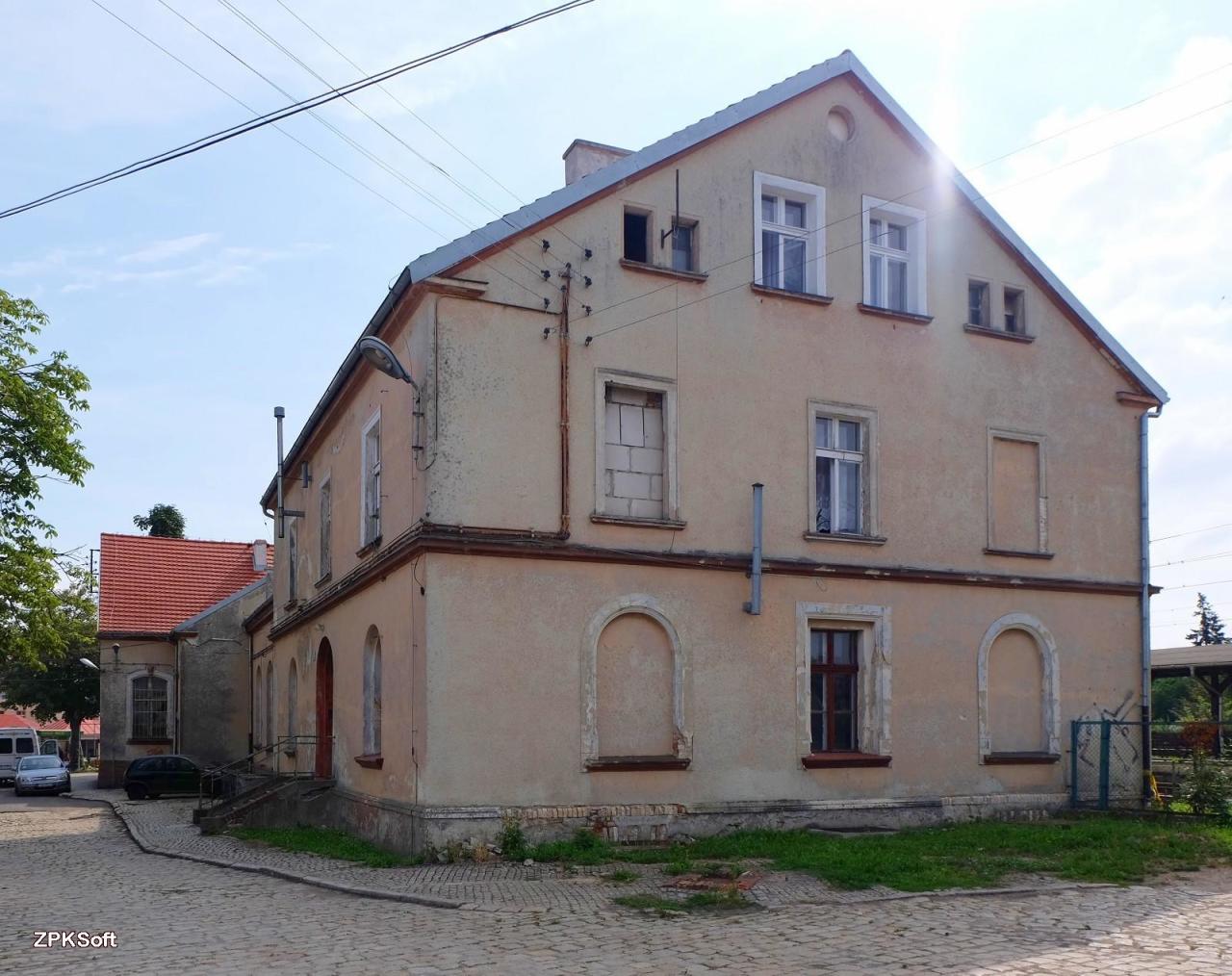 Dworzec kolejowy z 1912 r. widziany od strony placu przeładunkowego, w kierunku północno-wschodnim. W planach jest remont obiektu.