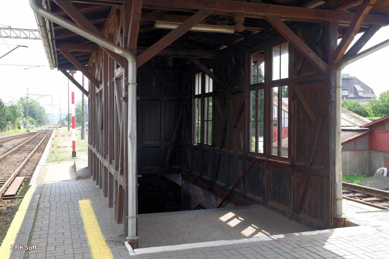 Drewniana wiata peronowa. Widok w kierunku południowo-zachodnim (Jaworzyna Śląska).