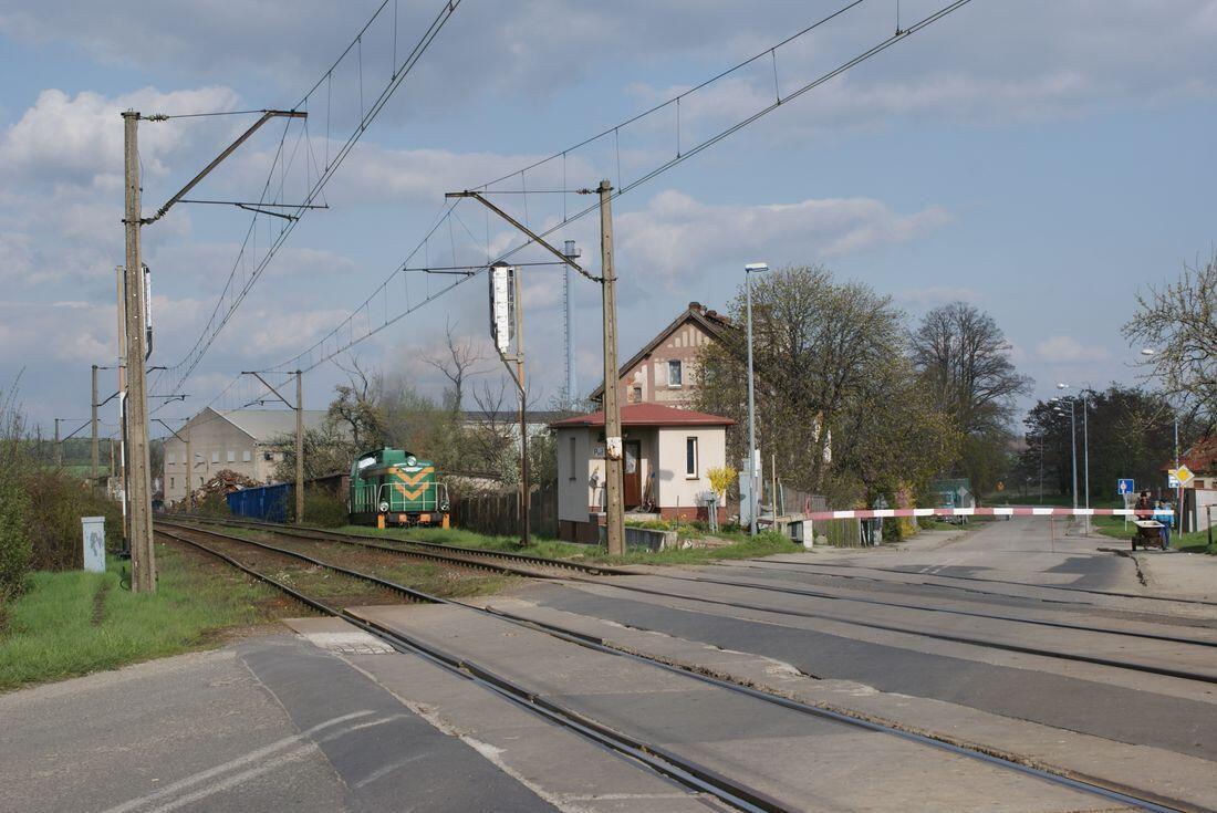 Przejazd na ul. Dworcowej. W prawo Jaworzyna Śląska, w lewo peron.