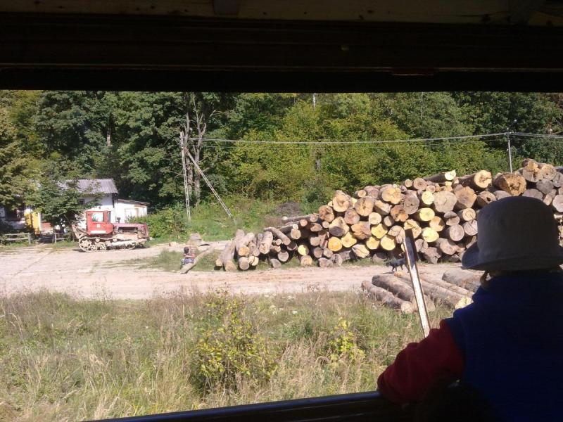 | Jeden z wielu placów składowych drewna. Po zakończeniu przewozów kolejką w 1994 roku, nadal używany - ale już z wykorzystaniem samochodów. Perony porządnego ani budynku dla pasażerów nigdy tu nie było. |