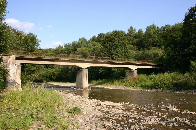 Most nad Osławą, za którym kilkadziesiąt metrów na południe był rozjazd do tartaku w Mikowie Nie ma tam żadnego budynku. To środek lasu. |
