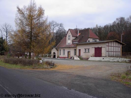 Rogalice. Nieczynna nastawnia dysponująca. Widok od strony wjazdu z Jelcza-Laskowic/Wrocławia.