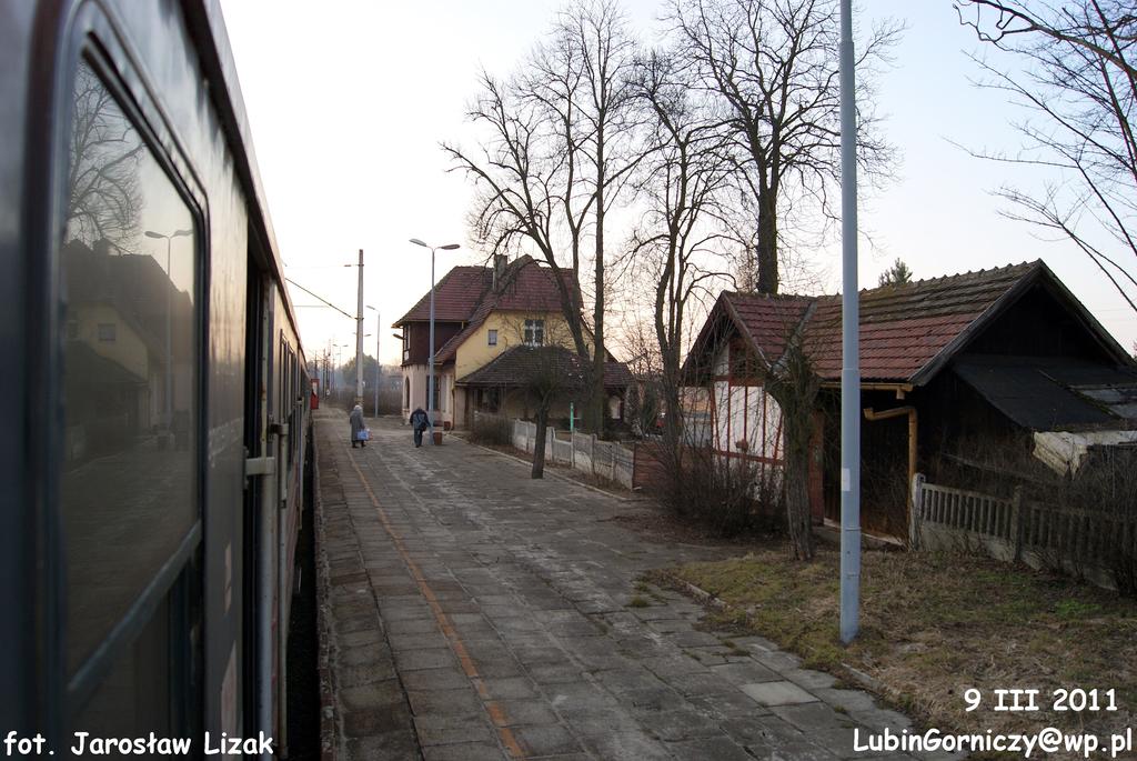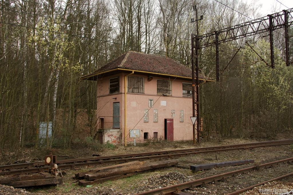 Była nastawnia dysponująca jest ponownie widoczna dzięki wycince drzew oraz wczesnowiosennej porze. W lewo perony, w prawo Jelcz-Laskowice/Wrocław.