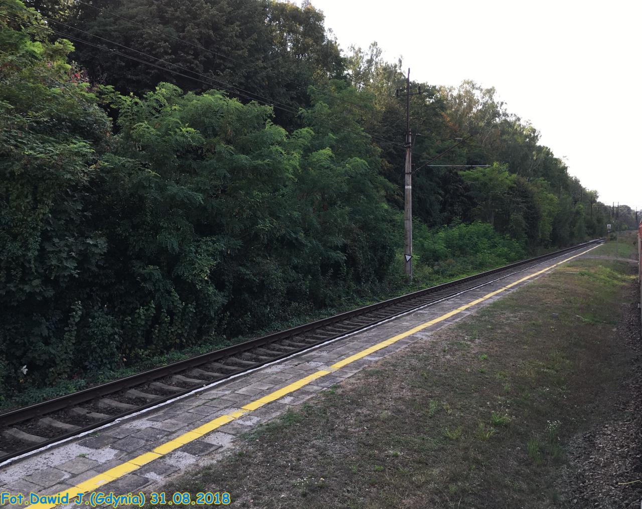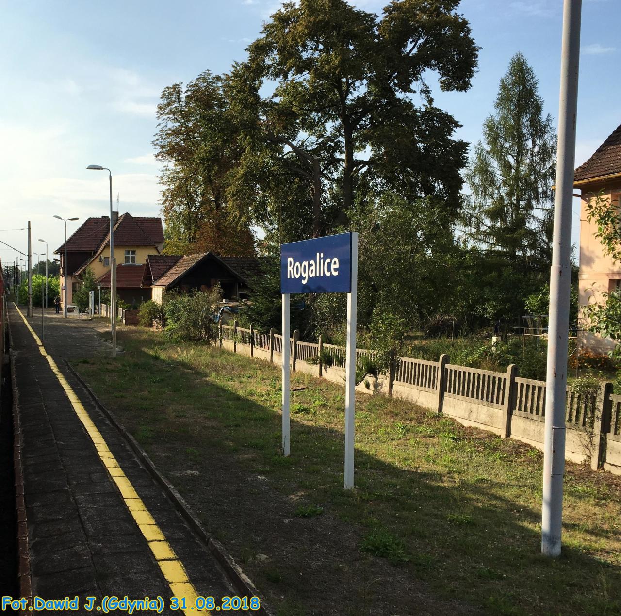 Rogalice. Peron 1 oraz budynek toalet. Widok z peronu 2. W prawo Wyjazd na Opole.