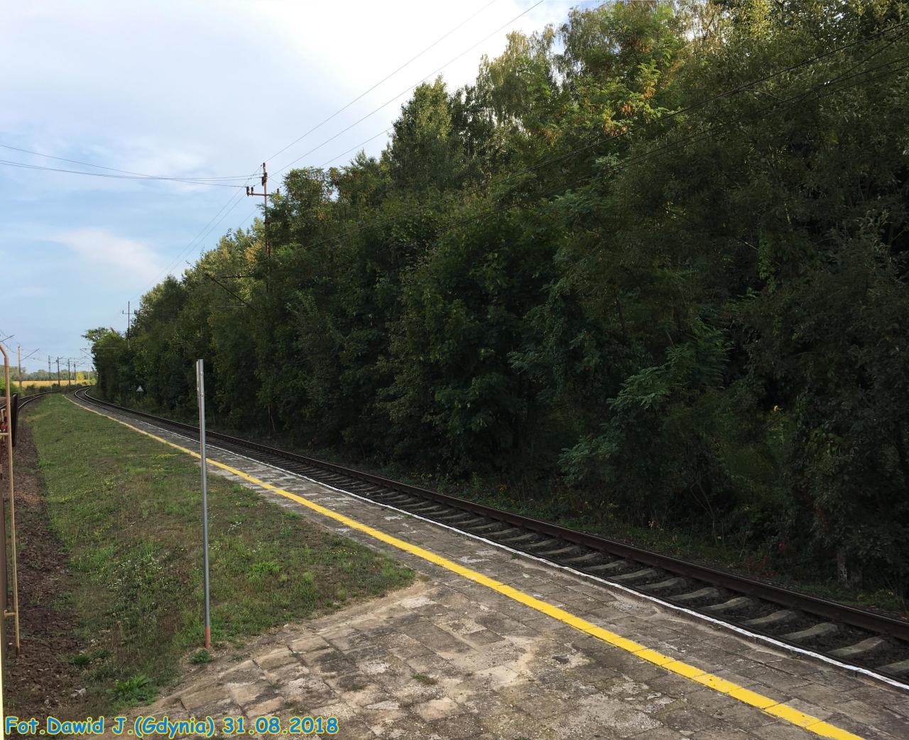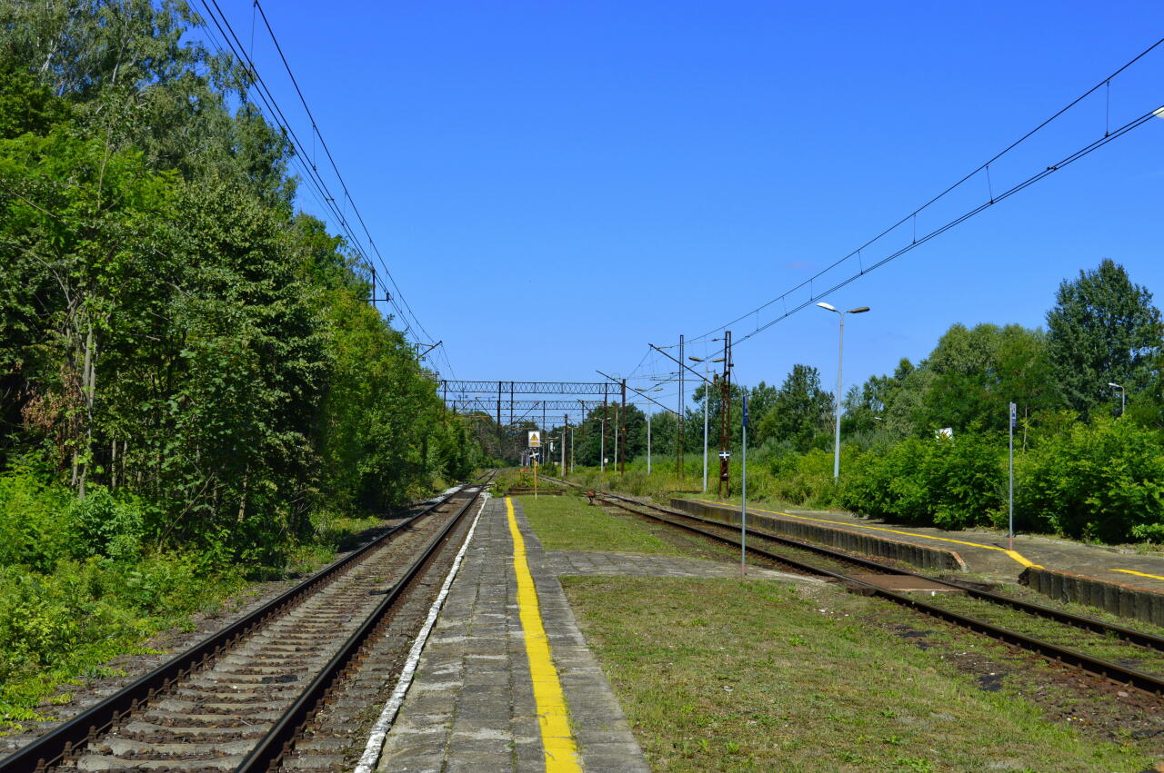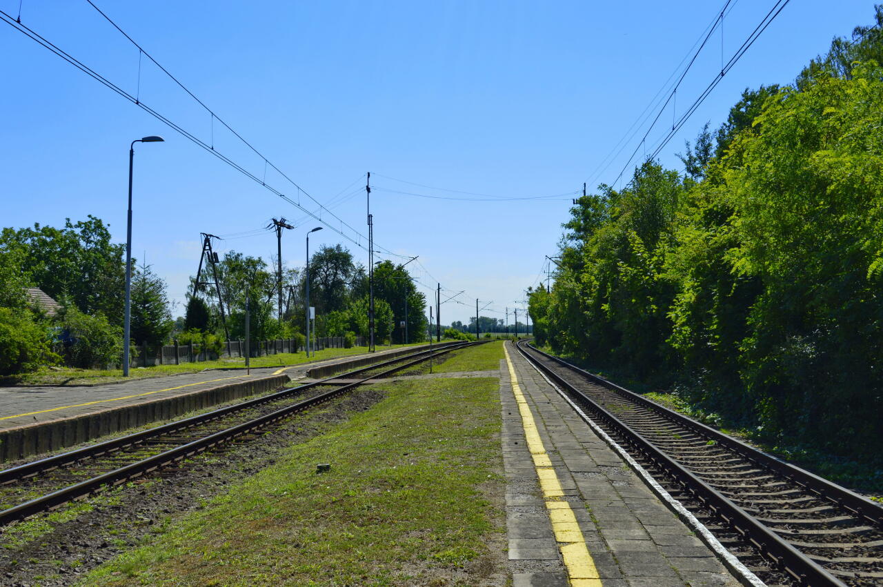 Rogalice. Widok z peronu 2 w kierunku Jelcza-Laskowic/Wrocławia. Po prawej stronie peron 2.