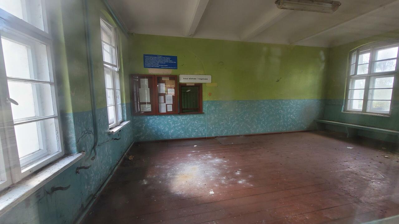 Wnętrze budynku dworca Rogalice.