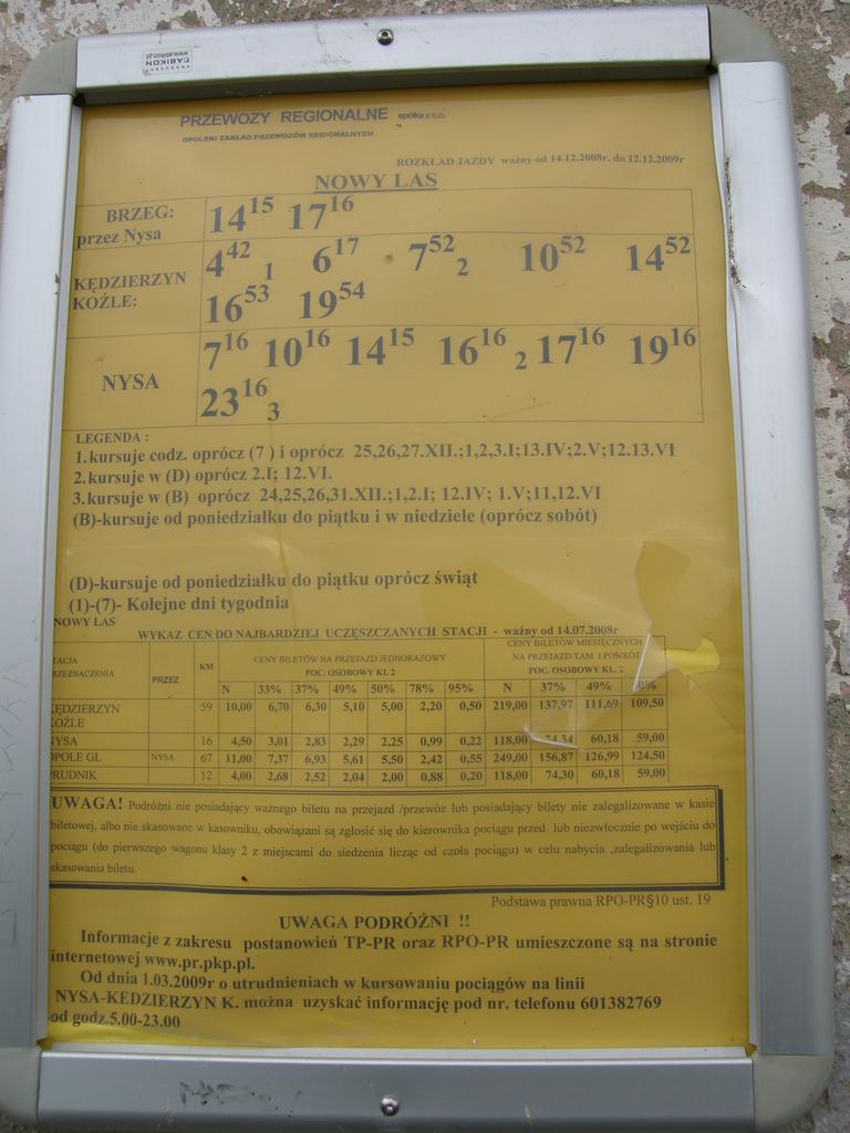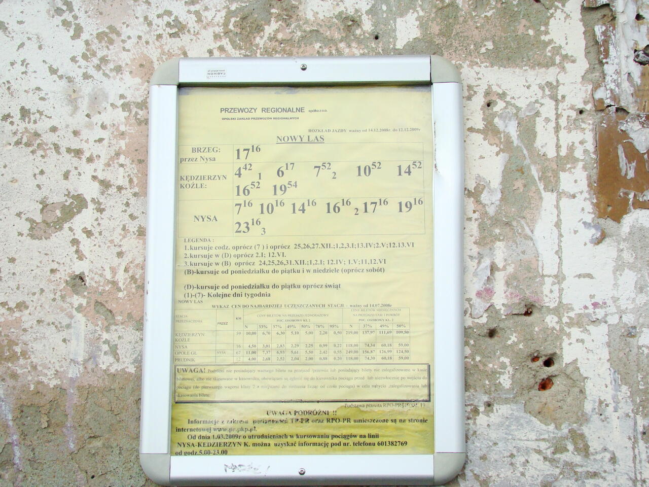 Nowy Las. Tablica rozkładu jazdy na rok 2008/2009.