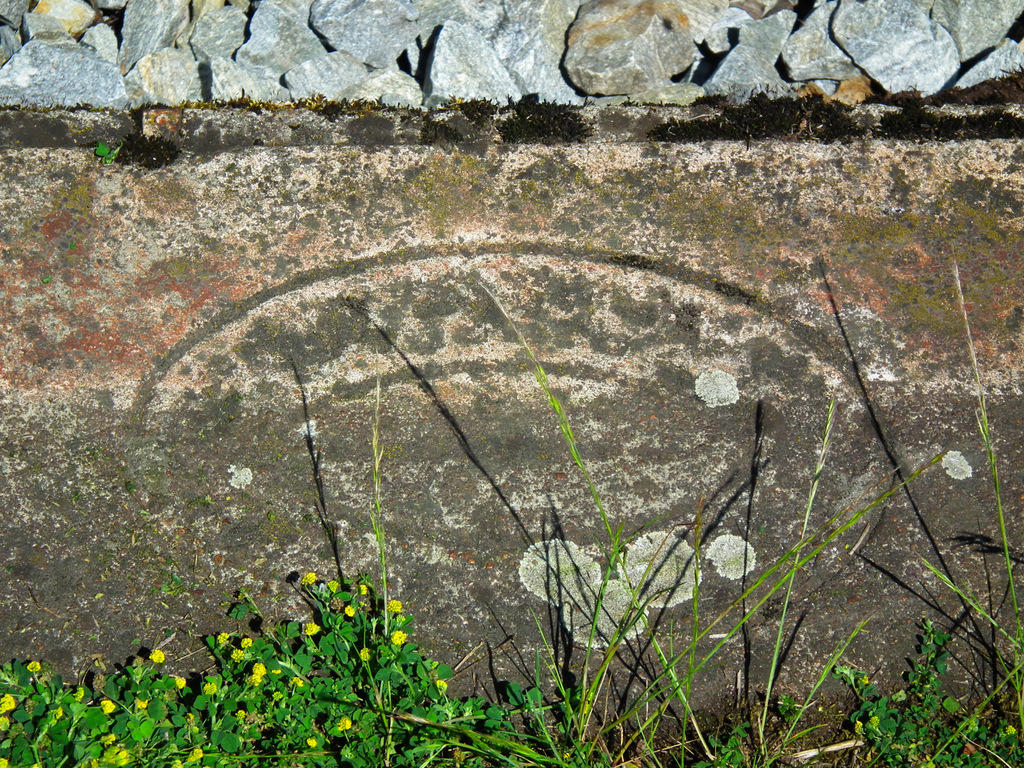 Trudne do odczytania napisy z starego znaku na krawędzi peronowej.