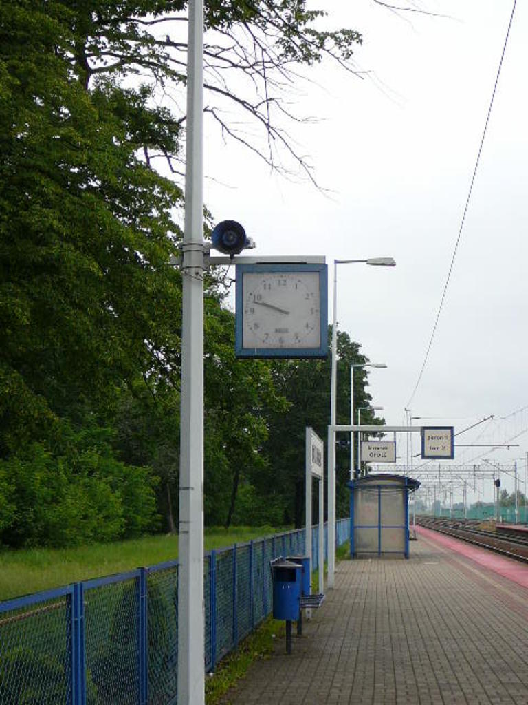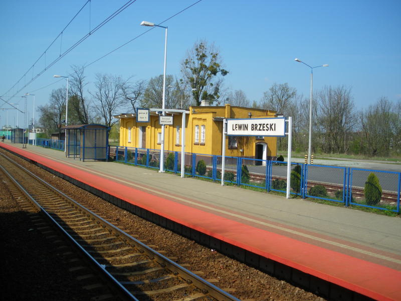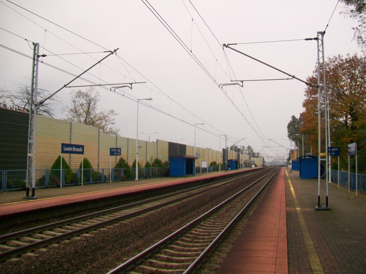 Lewin Brzeski. Peron 1 z zegarem i wiatą, z tego peronu odjeżdżają pociągi w kierunku Opola ale widok jest w kierunku Wrocławia.