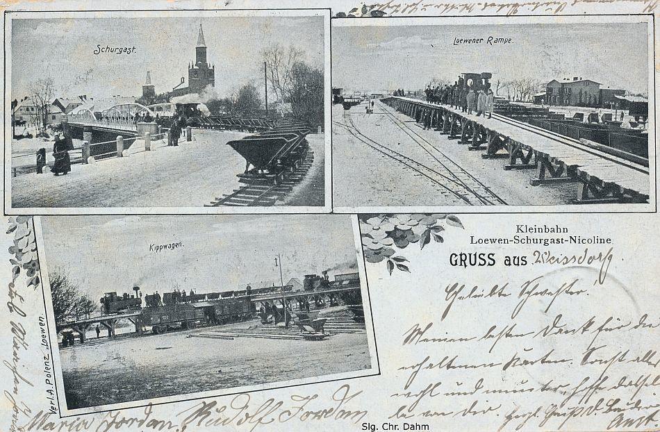 Prawdopodobnie na przełomie 1902/1903 do stacji normalnotorowej, była doprowadzona kolejka wąskotorowa. Prowadziła ona z Mikolina przez Skorogoszcz do Lewina. Zbudowano ją aby przeładować towar z barek uwięzionych przez lód na Odrze.